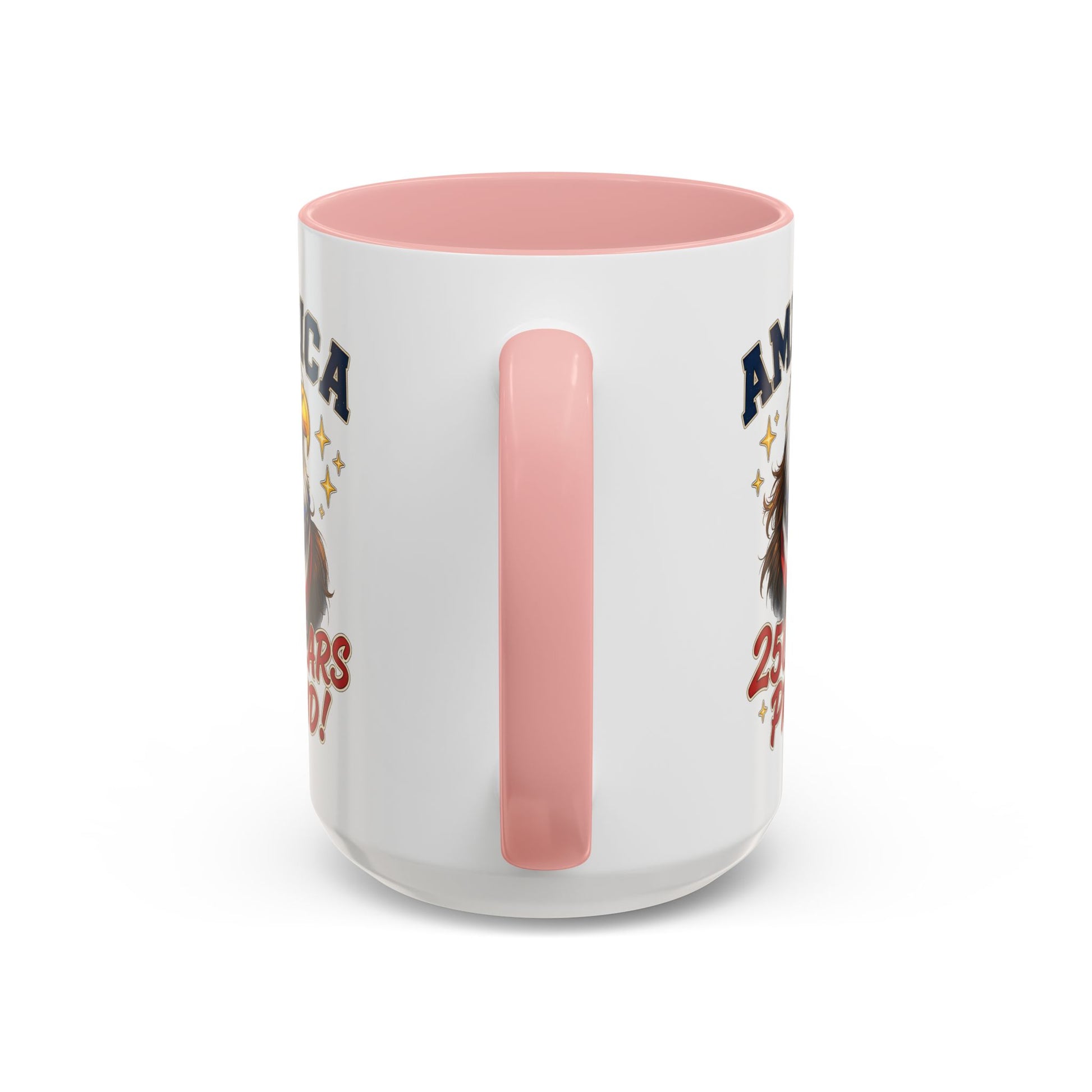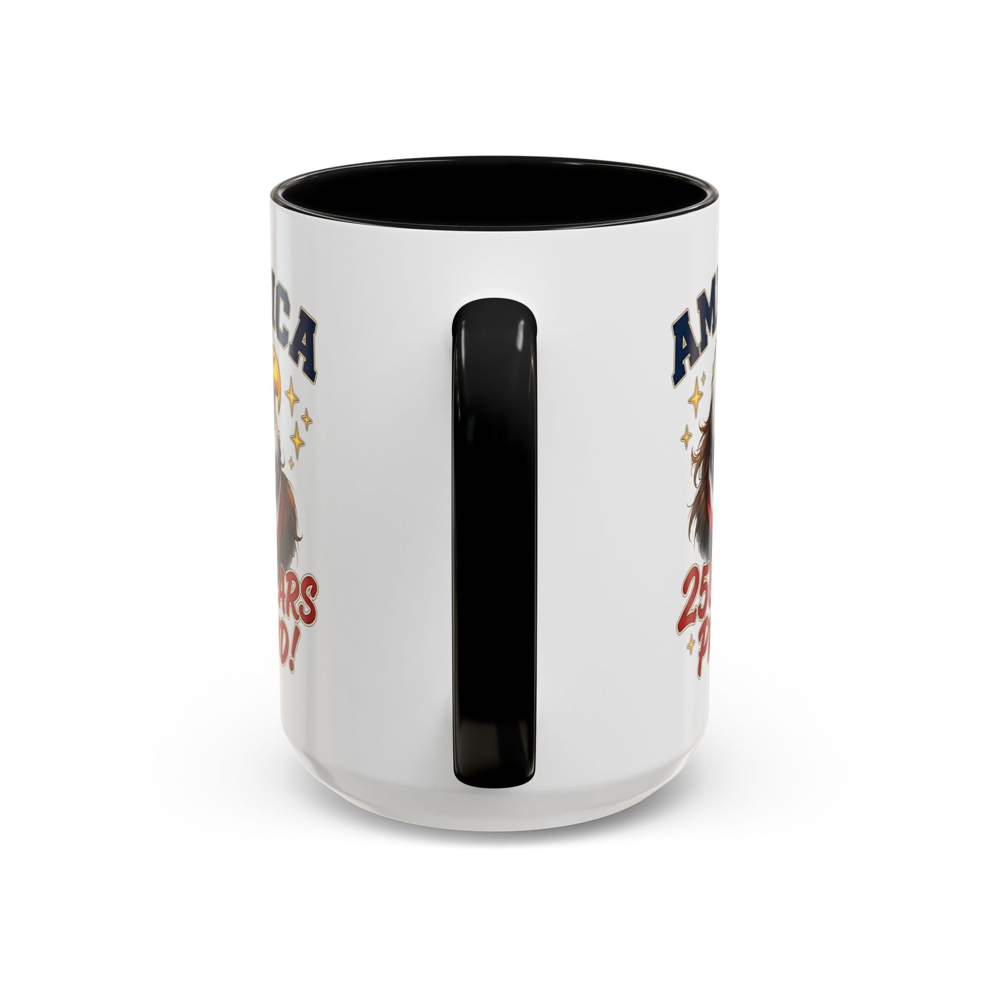 Morning light warms the kitchen. You reach for a bold, color-contrast mug that feels steady in your hand — glossy black rim and handle, bright white body, and an eagle wearing a stars-and-stripes bandana proclaiming “America — 250 Years Proud!” It’s built to be used: microwave-safe for reheating, dishwasher-safe for easy cleanup, and made from durable white ceramic with a smooth C-shaped handle. The vivid print pops on the glossy finish and holds up thanks to modern printing techniques. Use it for your everyday coffee, a patriotic breakfast ritual, or to mark national celebrations with something that looks made for the moment rather than shoved in a cabinet.
