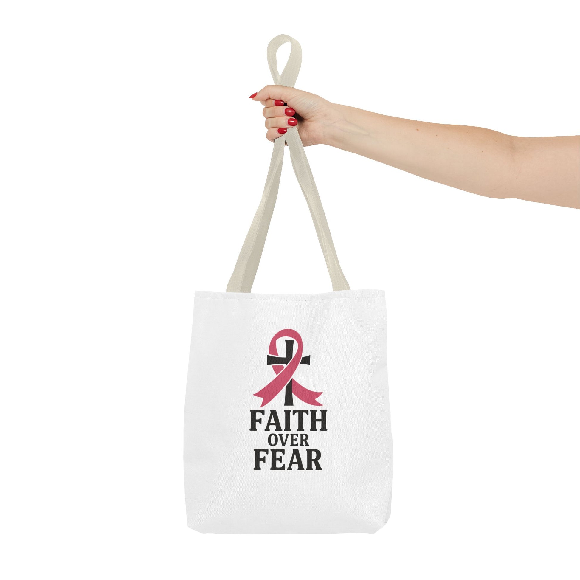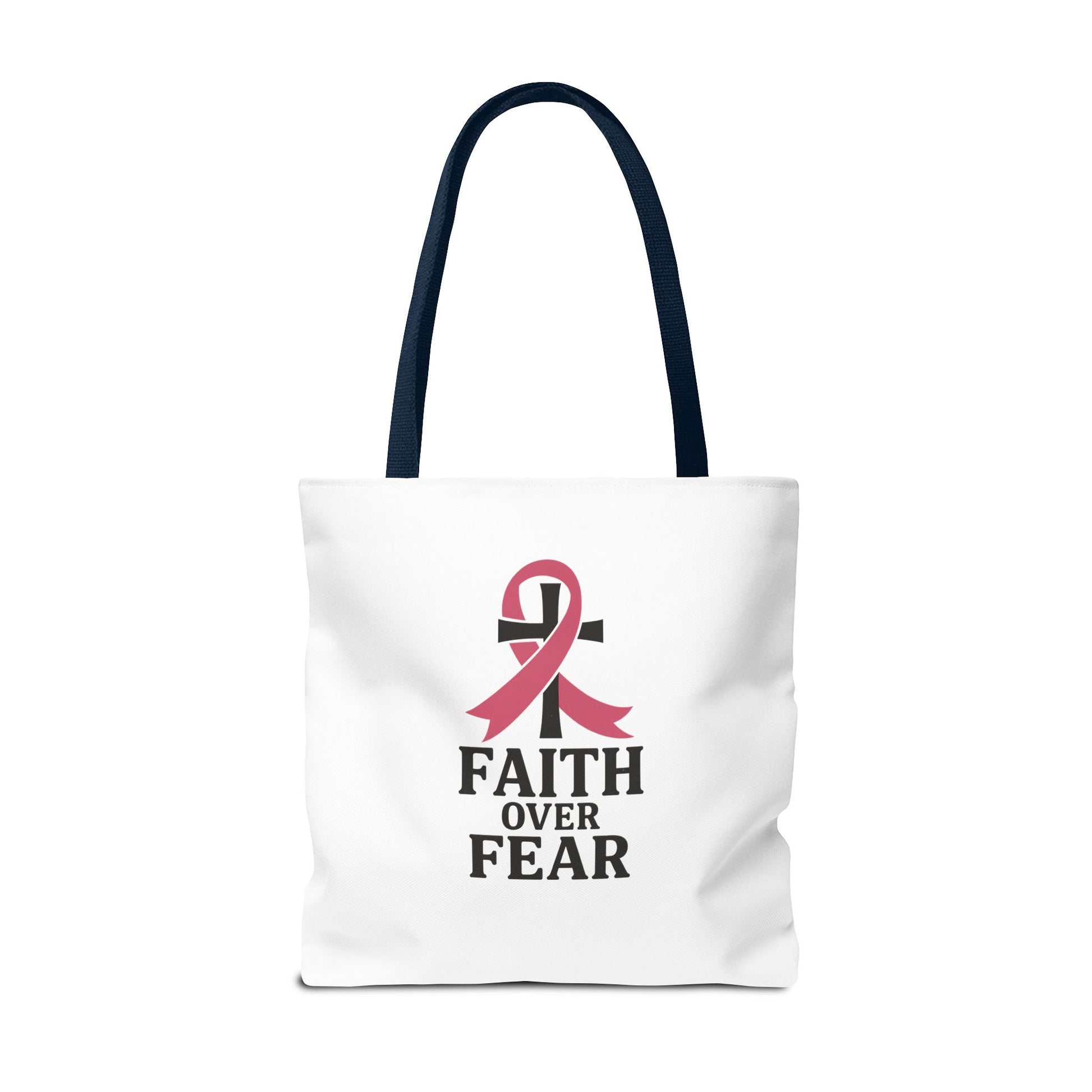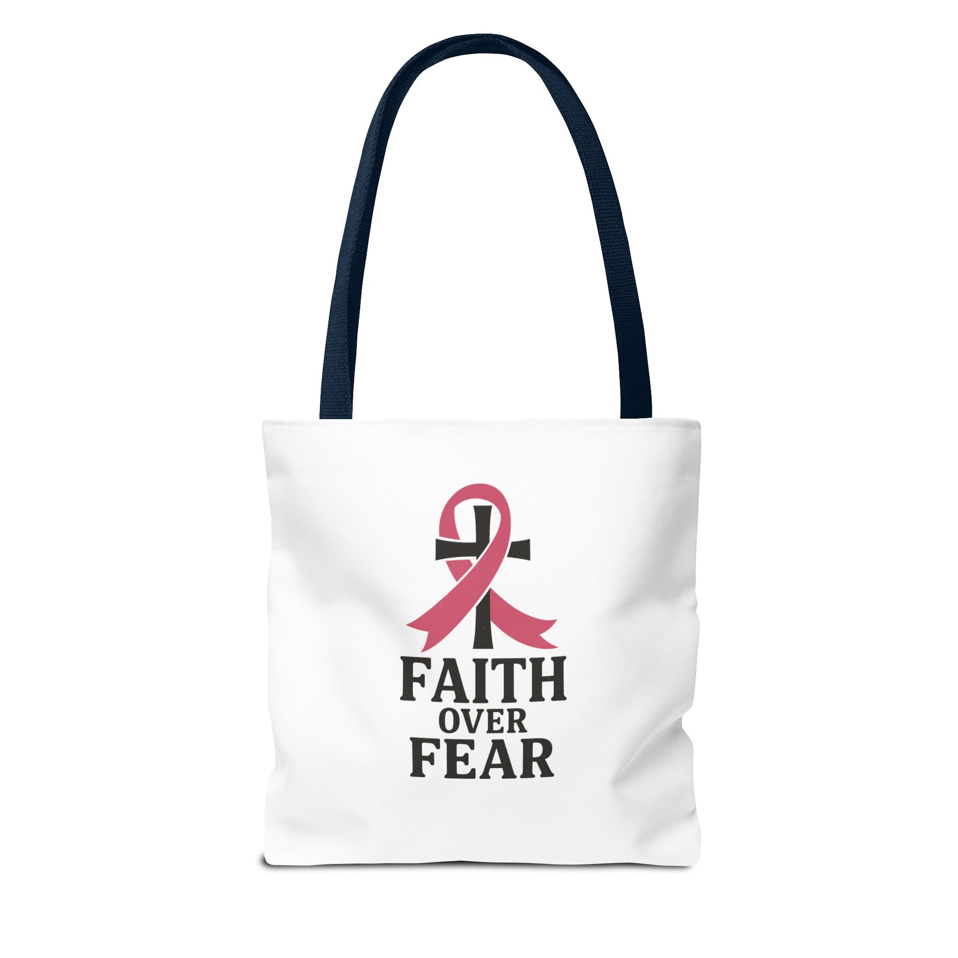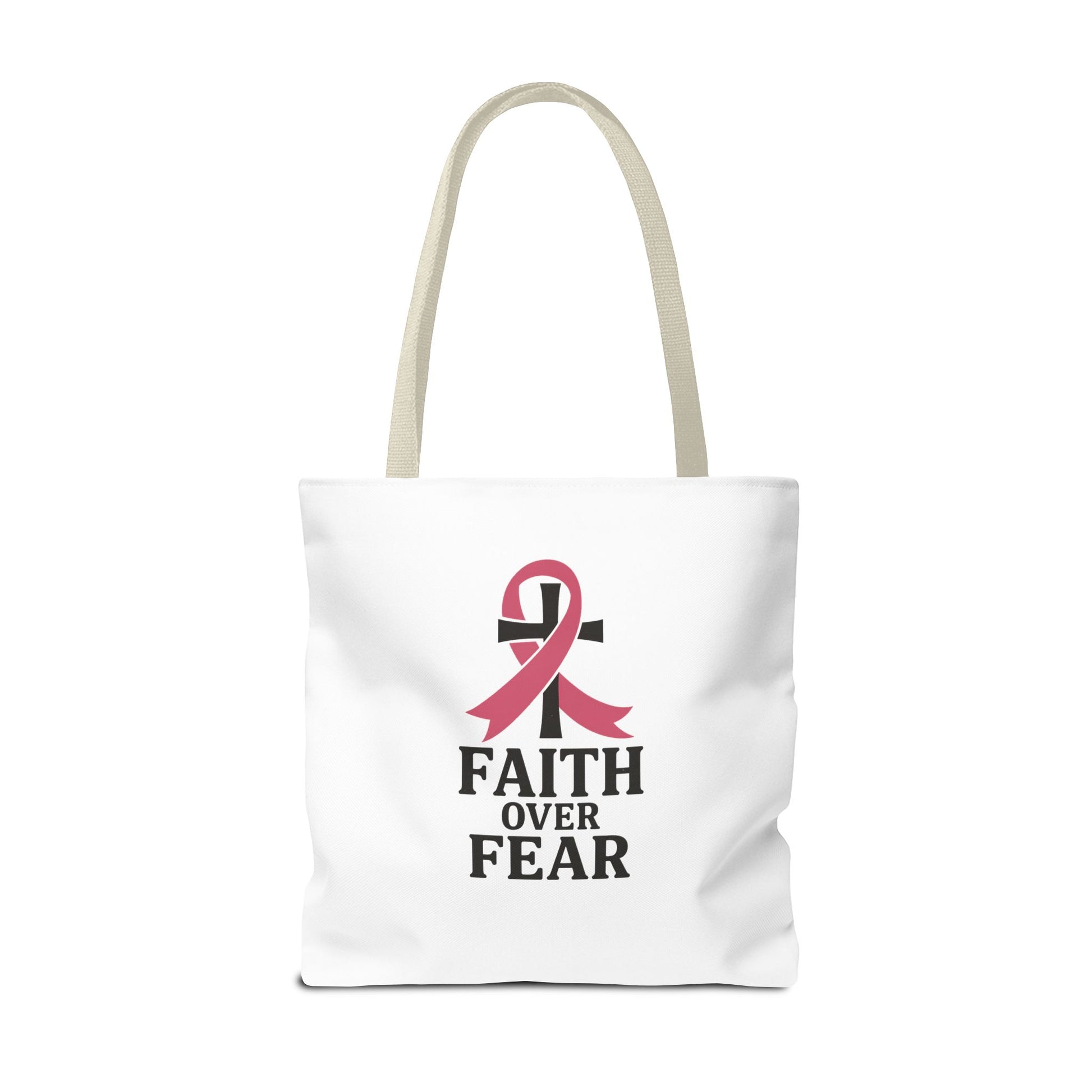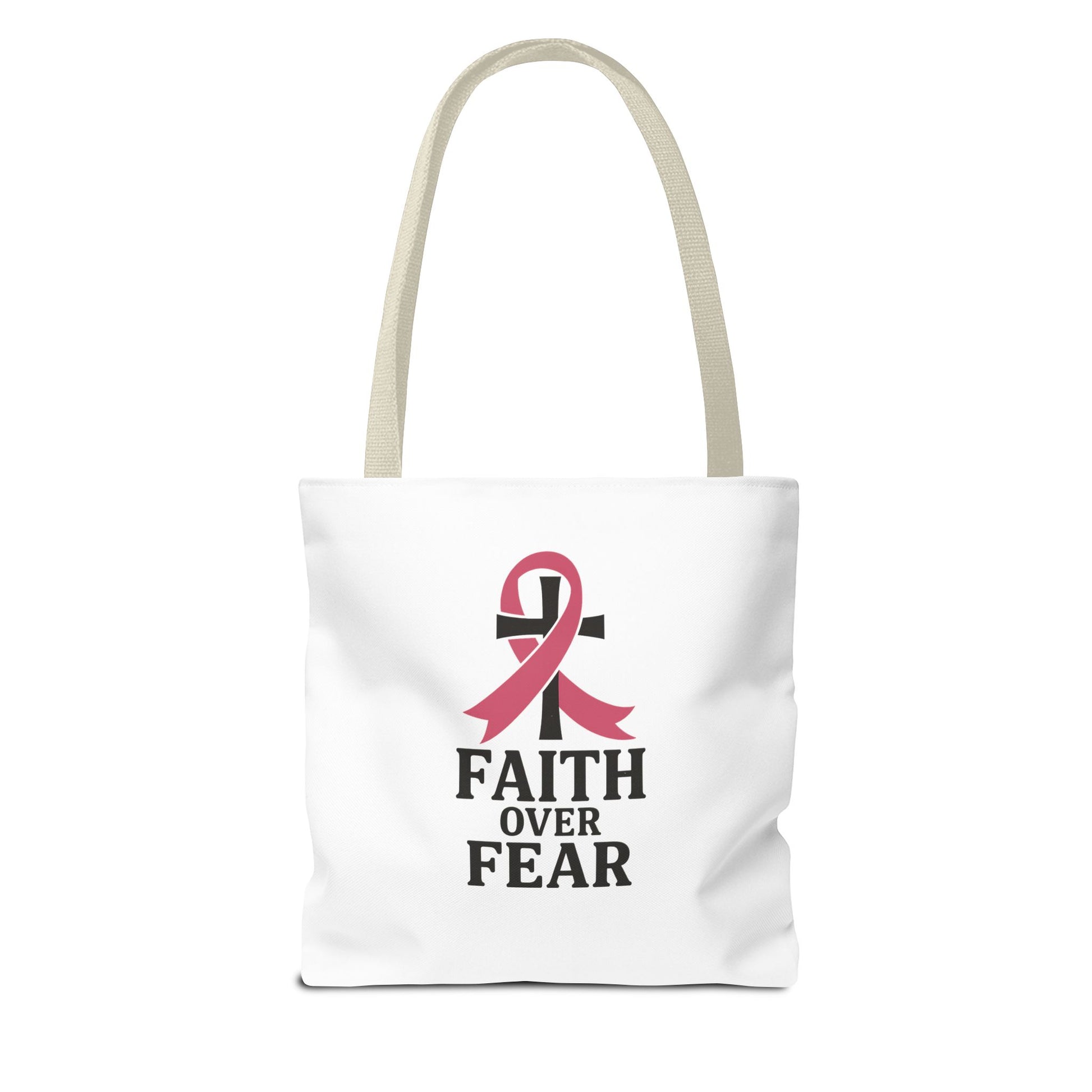 Faith Over Fear Tote Bag, Inspirational Gift for Cancer Awareness, Motivational Tote, Breast Cancer Support, Daily Use Bag