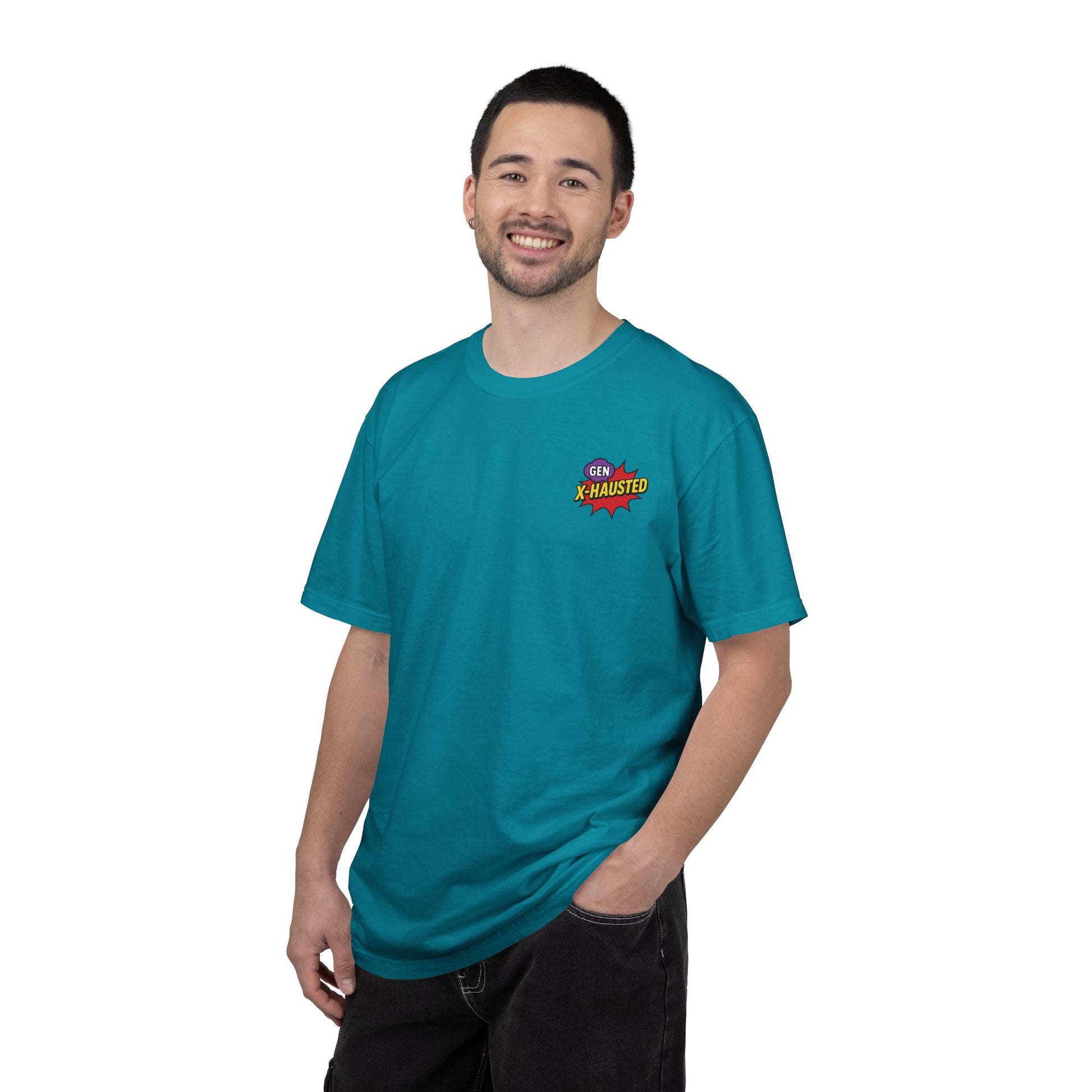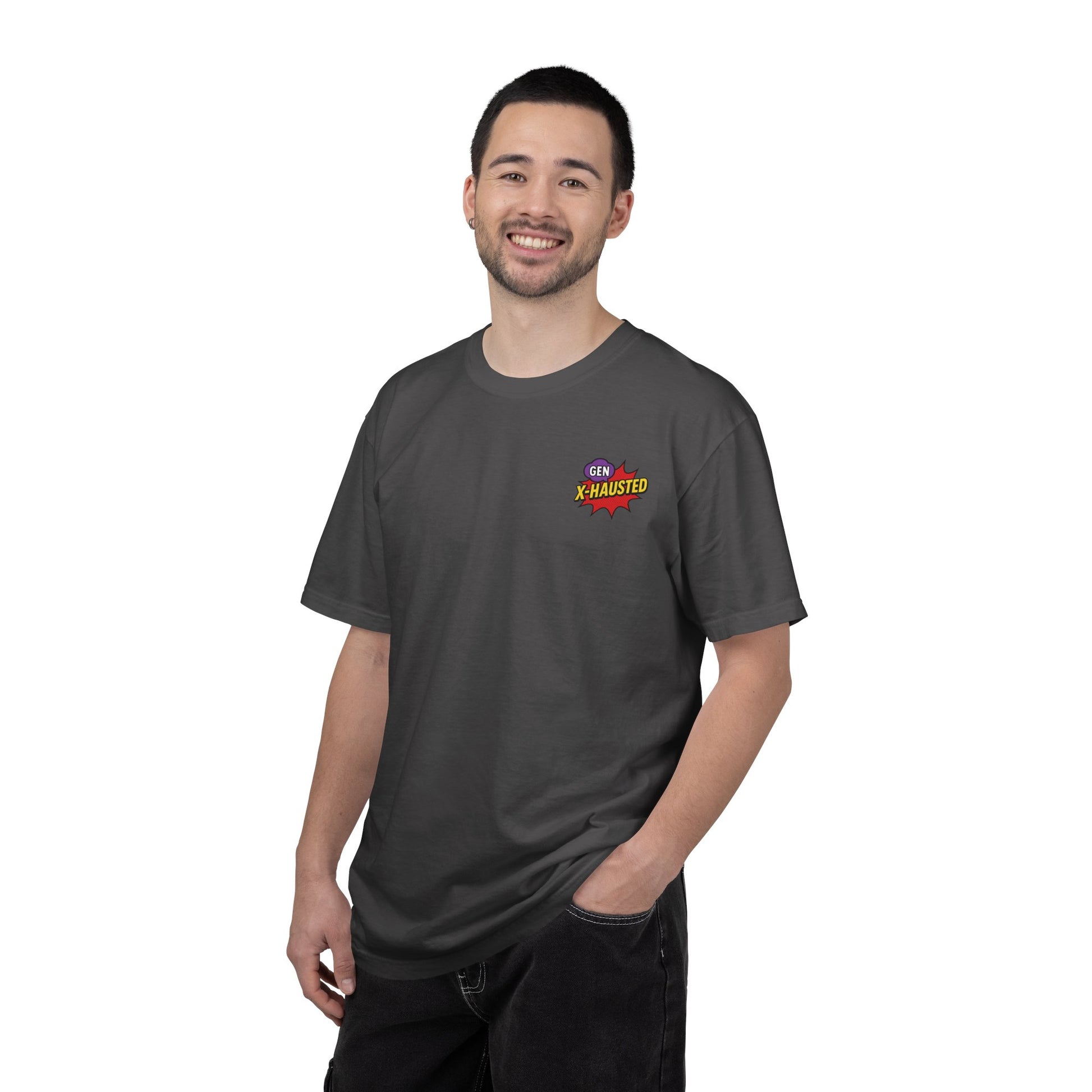This Gen X Comic-Style Funny T-Shirt is a perfect addition to any casual wardrobe. With its humorous 'Forgot Again, Found Out' design and matching Gen X-Hausted logo on the front, it adds a fun and light-hearted vibe to any outfit. Ideal for those who enjoy witty and playful clothing, this t-shirt is perfect for everyday wear, lounging at home, or hanging out with friends. Great for gifting on birthdays, holidays, or just to bring a smile to someone's face.