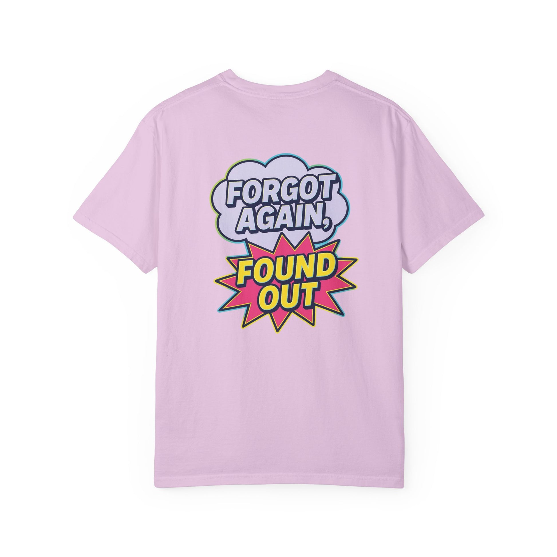 Gen X Comic-Style Funny T-Shirt Forgot Again, Found Out, Unisex Garment-Dyed Tee for Humor Lovers, Graphic Novel Shirt, Hilarious Cotton Top