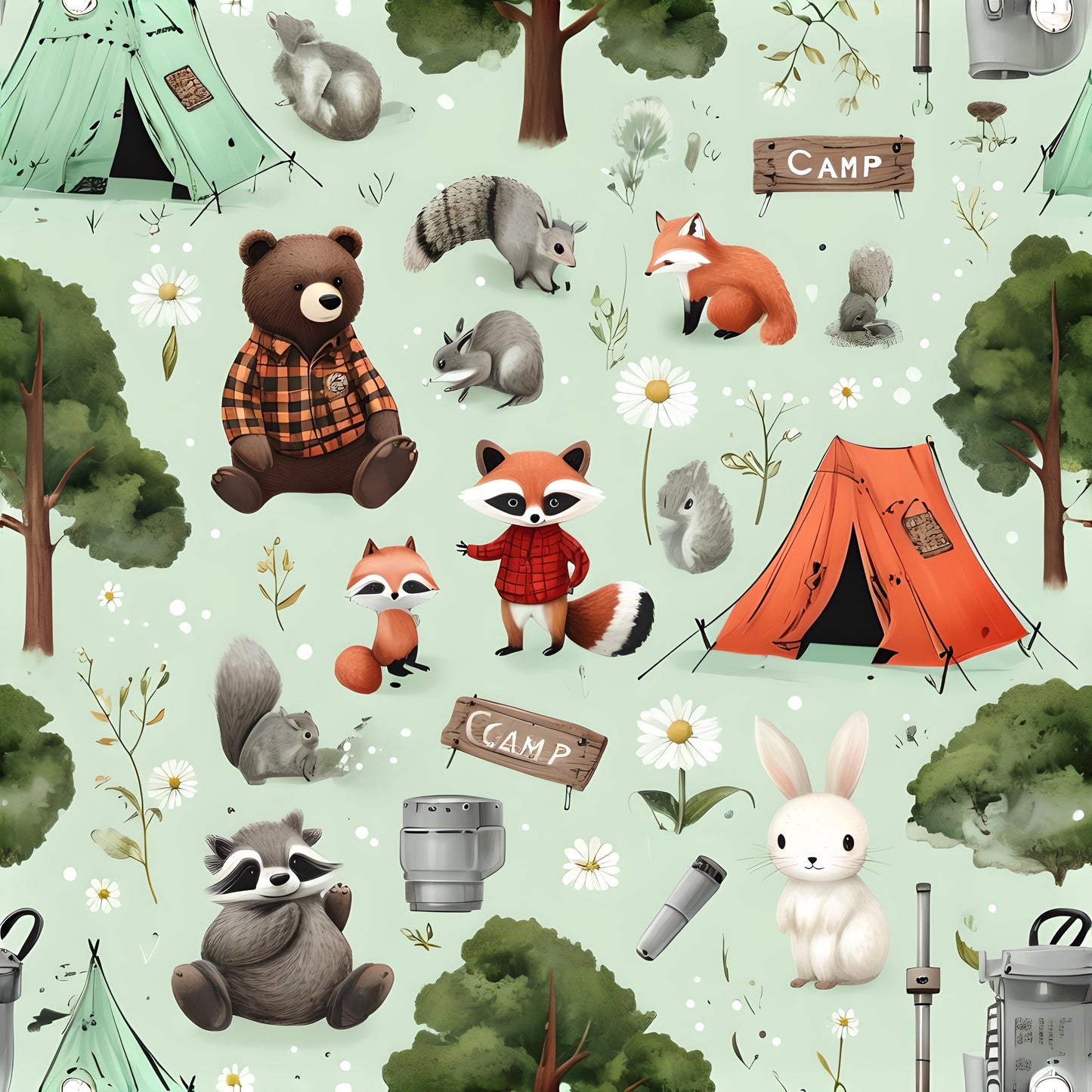 Adorable forest animals & camp scene