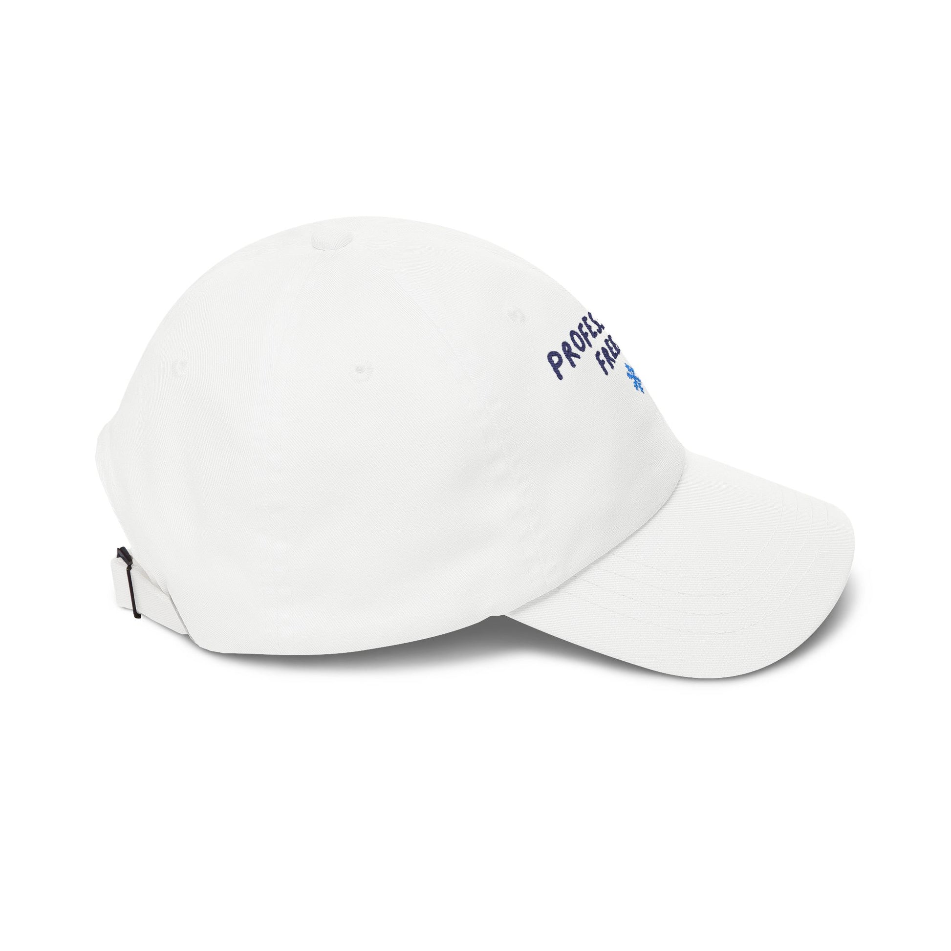 Light, laid-back, and a little bit cheeky — this classic dad cap carries a cool, tongue-in-cheek vibe. Soft, low-profile cotton molds to your head for easy all-day wear while the precurved Permacurv® visor keeps sun and glare out of your eyes. Embroidered lettering reading “Professionally Freezing” with a small snowflake adds a playful, seasonal wink without shouting. The adjustable self-fabric hideaway strap with antique brass buckle gives a clean back profile and a tailored fit. Wear it on crisp mornings by the coffee cart, at holiday markets, or during chilly commutes — it’s the kind of cap that feels lived-in from the first wear and announces a dry sense of humor to anyone who notices.