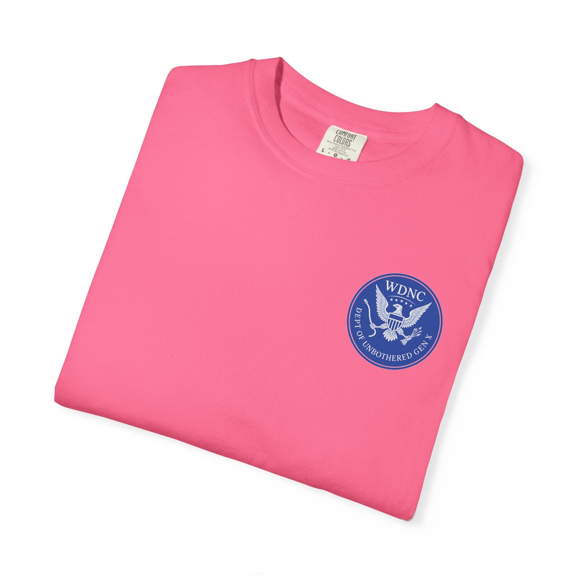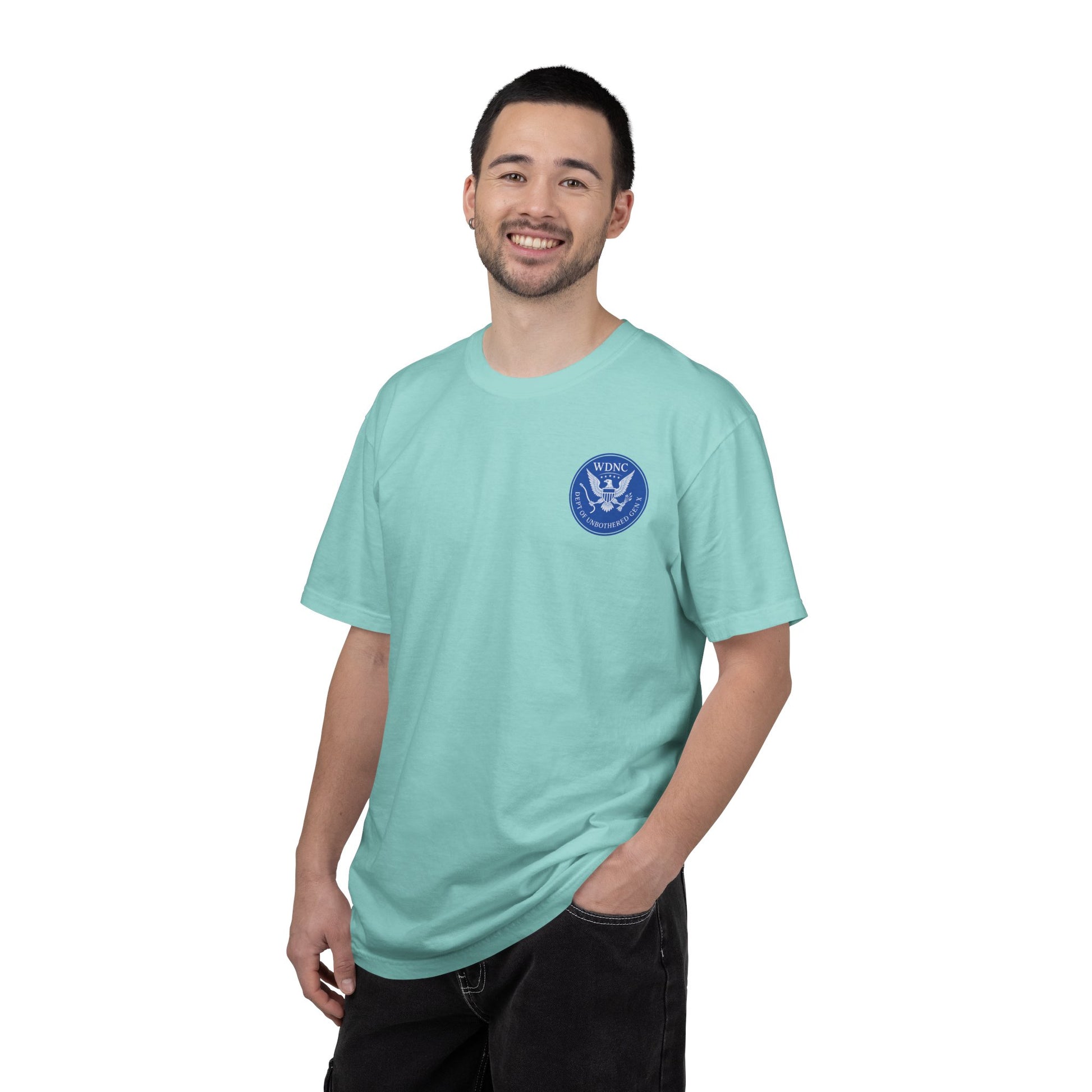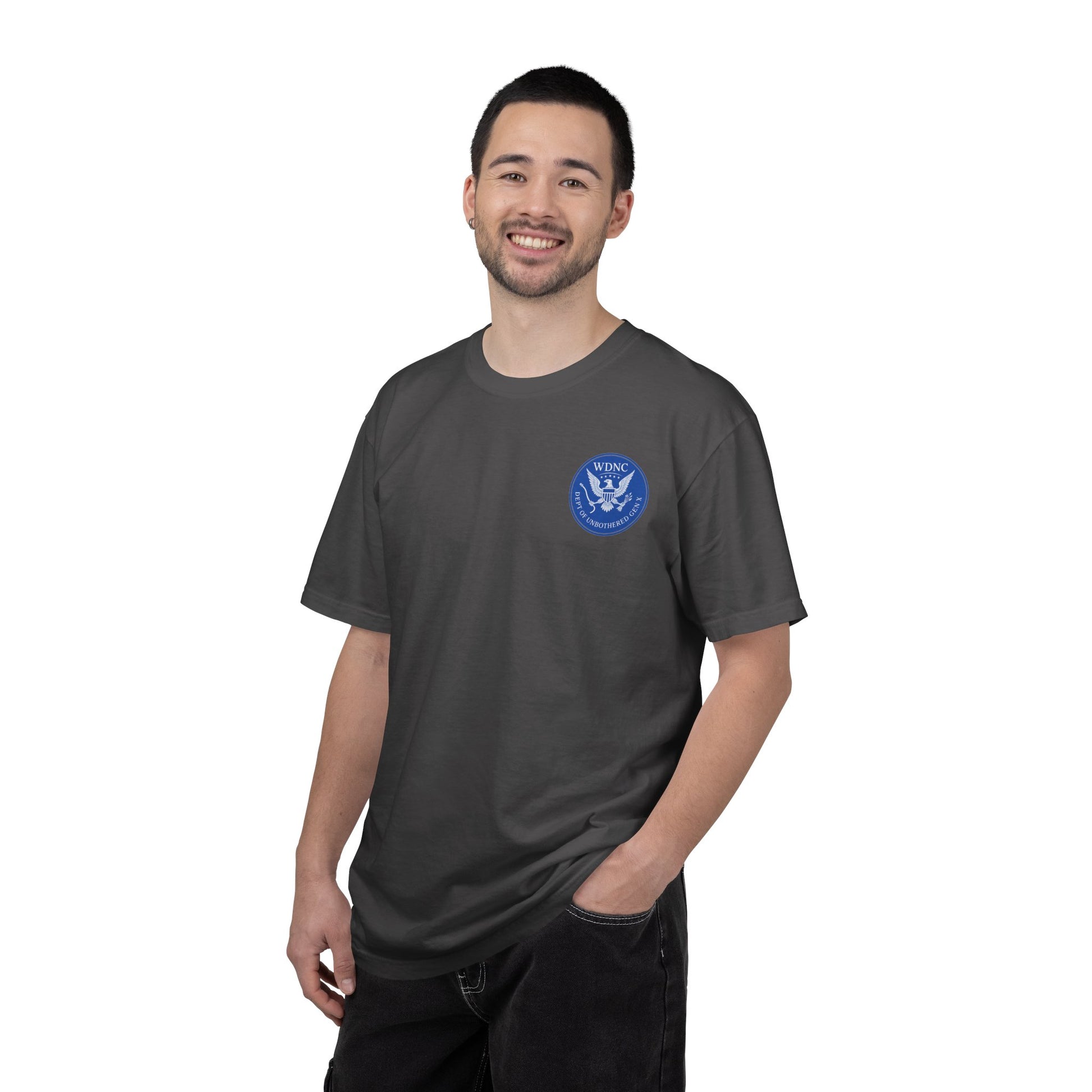 This WDNC Unbothered Gen X Humor T-shirt exudes a carefree and witty vibe, perfect for those who want to showcase their humor and laid-back attitude. It is ideal for Gen X individuals looking to express their unique sense of humor and style. This garment-dyed T-shirt is great for casual wear, lounging around, or as a statement piece during gatherings with friends and family. It is relevant for birthdays, casual get-togethers, and everyday wear.